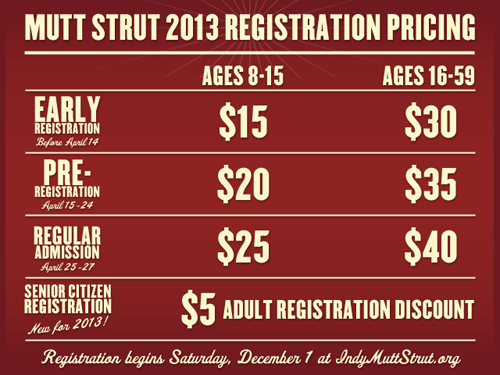 If you have any other questions or just want to learn more, you can check out all of the doggie details at www.indymuttstrut.org!