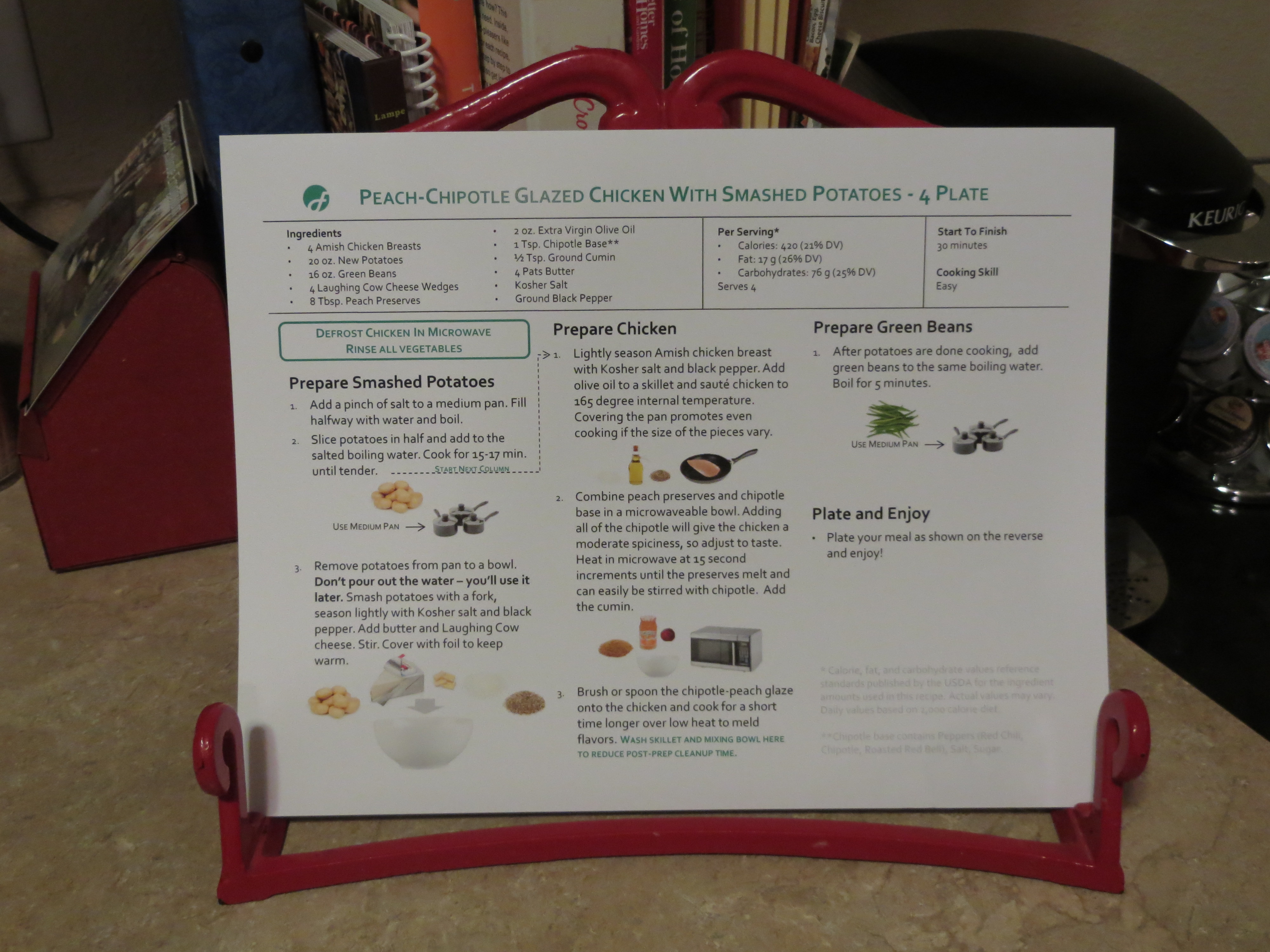 The recipe I got to make was Peach-Chipotle Glazed Chicken with Smashed Potatoes and Green Beans. Besides turning out absolutely delicious, here are some other neat things I learned while making the meal.